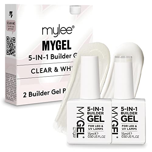 Mylee 5 i 1 Stärkande byggare Gel Duo 2x15ml - Clear & White - UV/LED Nail Polish Top Base Coat, Nails Tips & Extensions, Nail Art Decoration, Decals & Jewels, Professional Manicure Repair