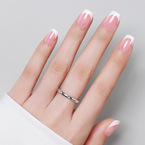 Luxbon Press On Nails Short Square med No-Cure Nail Glue och Tool Kit – Franskt lim på naglar 25-30st Full Size Set, Soft Gel Nail Tips Återanvändbara Falska Naglar, Chrome White