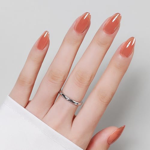 Luxbon Short Almond Durable Press On Nails med No-Cure Nail Glue och Tool Kit – Chrome Soft Gel Tips 25-30st Full Size Set, Återanvändbara Falska Naglar, Stick On Nails, Tomat