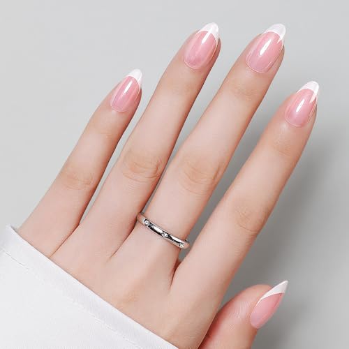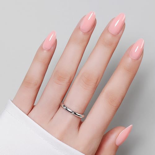 Luxbon Short Durable Almond Press On Acrylic Nails med No-Cure Nail Glue och Tool Kit – Lim På naglar Soft Gel Tips 25-30st Full Size Set, Återanvändbara Falska Naglar, Krom Nude