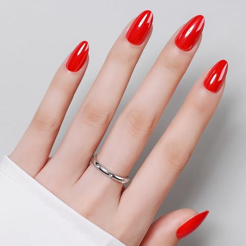 Luxbon Chrome Press On Nails med No-Cure Nail Glue och Tool Kit – Kort Almond Soft Gel Tips 25-30st Full Size Set, Återanvändbara Falska Naglar, Salon Look At Home, Röd