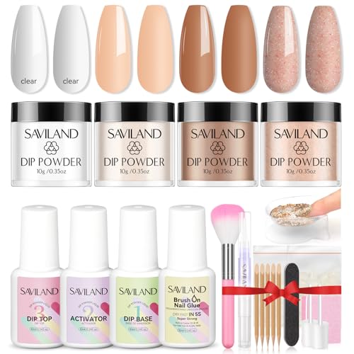 SAVILAND Dipping Powder Nail Starter Set – Keratin Franska Nails Tips Dip Powder Rosa/Nudes/Clear Base Top nagellim infiltration pulver förvaringslåda tillbehörsset Fingertip Flow Jade