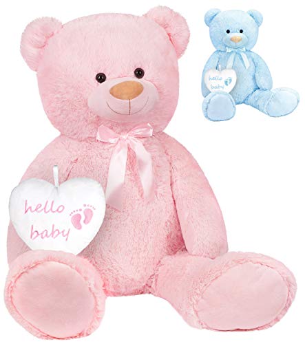 BRUBAKER XXL Nallebjörn 100 cm Med Hello Baby Hjärta - Baby Shower Gåva för Nyfödda Flickor - Gosleksak Mjuk Leksak Plyschleksak - Rosa