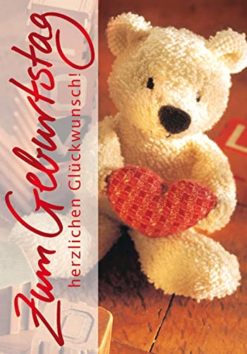 Perleberg Högkvalitativt födelsedagskort från Basic Classic Collection Nallebjörn med hjärta – björnigt kort till födelsedag med kuvert – födelsedagskort i premiumkvalitet 11,6 x 16,6 cm