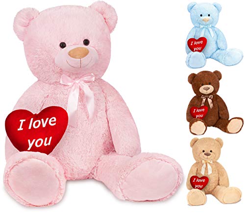 BEJOY Jättestor nallebjörn, gosedjur, stor kärleksbjörn i plysch med rött hjärta, för flickvän och barn, till alla hjärtans dag, 91 cm (36 tum), brun