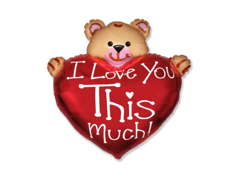 Nallebjörn Folieballong Med Hjärta, 95 X 95 Cm
