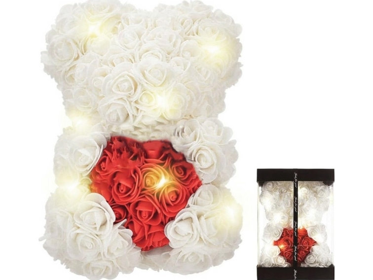 Atl Bq54c Nallebjörn Med Rosa Hjärta 25Cm Vit Och Röd Led