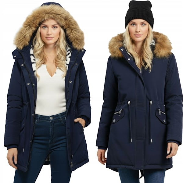 VARM VINTERJACKA MED NALLEBJÖRN, ISOLERAD DAMPARKA MED HUVA XXL Marinblå