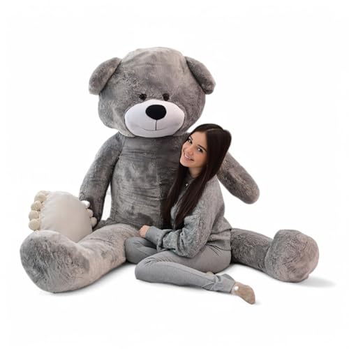 Odolplusz Jätte nallebjörn XXL, 220 cm, plyschgosedjur med silikoniserade fiberbollar (grå)