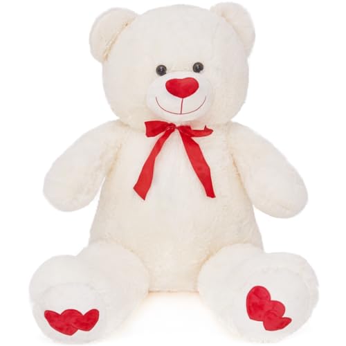 Snowolf Nallebjörn, jättestor, XXL, plysch, gosig björn, plyschbjörn med knappögon, 110 cm, stort och mjukt mjukisdjur, gåvapå födelsedag, alla hjärtans dag eller jul (1,1 m, gräddvit), heartcream