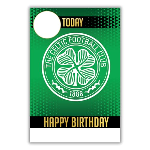 Keltisk fotbollsklubb födelsedagskort. Levereras med klistermärken för att anpassa din ålder och namn, grön