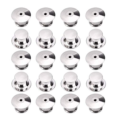 Stiftlås, 20 stycken metalllåsstift hållare bakstycken ersättning stift bakstycken lås för märken insignier namnetiketter visa böcker nyckelband väskor västar hattar (silver)