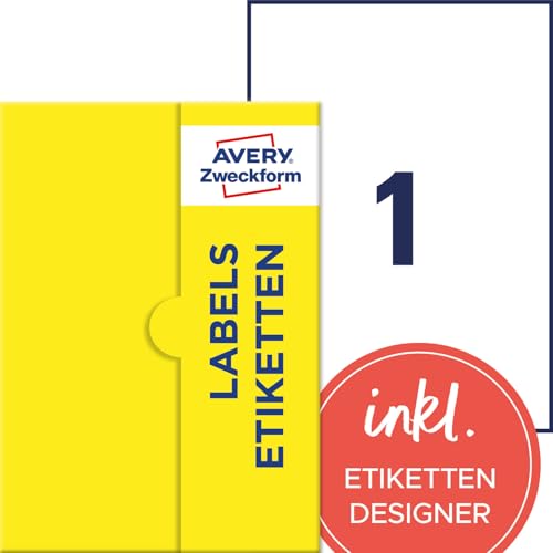 Avery Syftesform namnetiketter (200 namndekal, 85 x 50 mm på DIN A4, självhäftande, tryckta textiletiketter av acetatsida, lämnar inga rester eller laser, 20 bågar L4882-20) vit