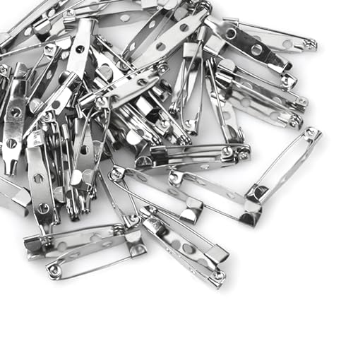 50 st silver barstift, säkra broschstift, säkerhetsnål bakspänne brosch med 2 hål för gör-det-själv hantverk bröstbuketter namnetiketter smyckestillverkning (25 mm)