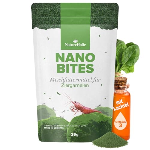 NatureHolic – Nano Bites – räkfoder akvarium – basfoder för daglig utfodring – lämplig för vuxna och babyräkor – högkvalitativa, naturliga ingredienser – 25 g
