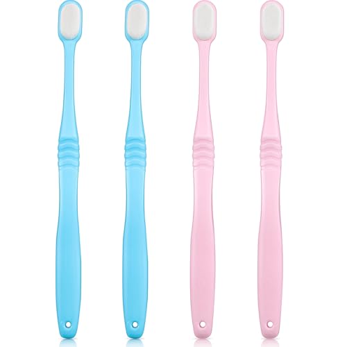 4 delar mjuk mikro-nano manuell tandborste extra mjuk borst tandborste med 20 000 borst för ömtåligt tandkött vuxna barn (blå och rosa slät)