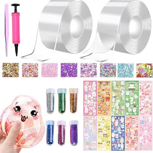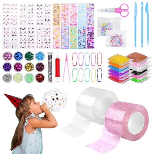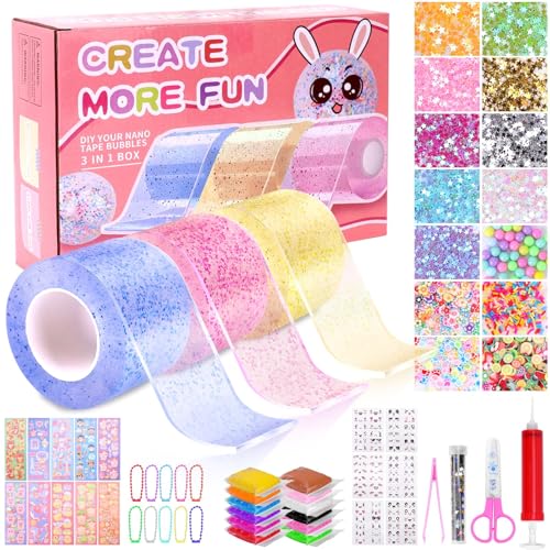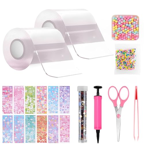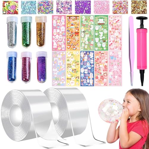 Nano Tape Bubbles-set, 34 stycken Nano Tape DIY Craft-kit, dubbelsidig tejp, Blowing Bubble tejp, magisk nanotejp med paljetter klistermärken, partypresenter för barn flickor pojkar