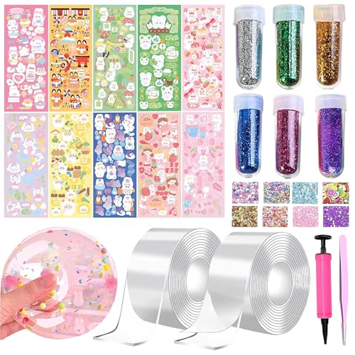 Meetory Nano tejp, 58 st tejpbubblor-set, magisk nanotejp, nanoband multipurpose, nano-tejp, set lämplig för unga flickor, med paljetter, klistermärken, gör-det-själv hantverkssats, fest