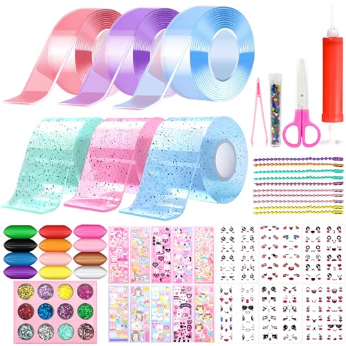 Meetory Nano tejp, 65 st tejpbubblor-set, magisk nanotejp, nanoband multipurpose, nano-tejp, set lämplig för unga flickor, med paljetter, klistermärken, gör-det-själv hantverkssats, fest