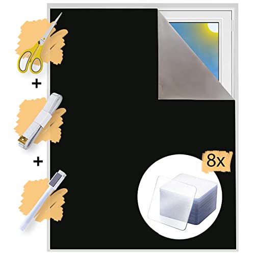 Mörkläggningstyg metervara | värmeskydd eller köldskydd | solskydd för 100 % mörkläggning | film med termisk beläggning för alla fönster | rullgardin utan borrning | Blackout (svart med nanotejp)