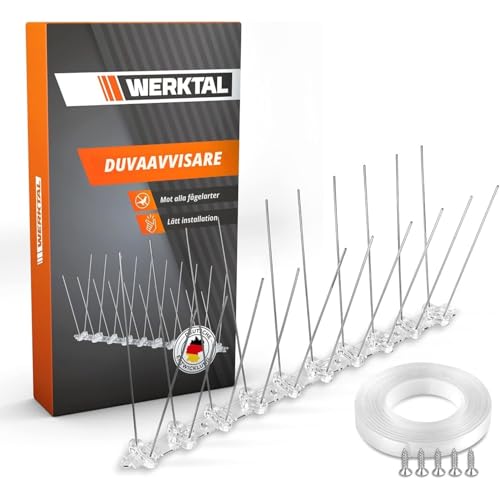WERKTAL Duvskrämma spikar – effektivt fågelskrämma av slitstarkt rostfritt stål [3 meter] – djurvänligt duvskrämma balkong och fönster – Verktygsfri montering tack vare nanotejp – Mot alla fågelarter