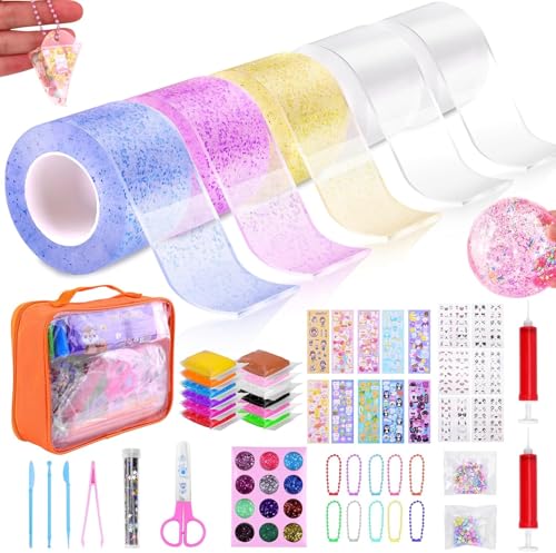 Meetory Nano Tape Bubbles-set – 63 stycken nano-tejp lyser i mörkret magisk nanotejp nanoband multisyfte nano-bubblor tejp set för unga flickor med paljetter klistermärken gör-det-själv hantverk kit