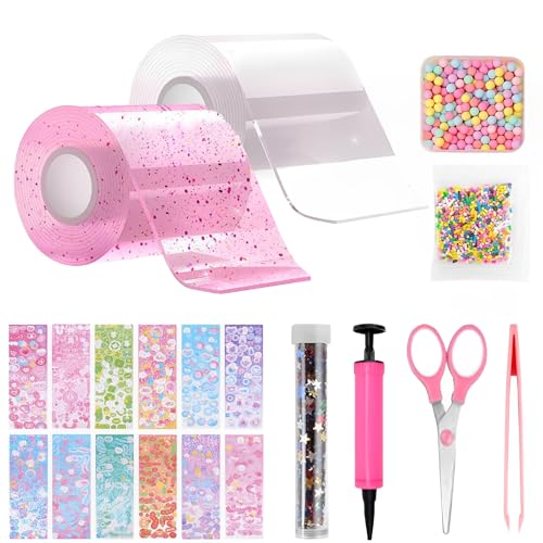 Nano Tape Bubbles - Nanotejp Bubble Kit för barn - magiskt band med glittrande pulver - mångsidig - transparent - för gör-det-själv, dekompression och dekompression av bubblor (A)