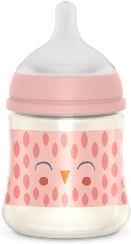 Suavinex, babyflaska 150 ml med fysiologisk napp SX Pro av silikon, med anti-kolikventil, långsamt matflöde (S), för nyfödda, för spädbarn +0 månader, Bonhomia, rosa