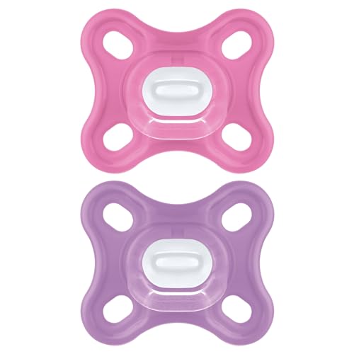 MAM Comfort S191 – lätt napp av Skinsoft™ silikon för spädbarn från 0 till 2 månader och spetsar i rosa, 2 stycken, med självsteriliserande låda