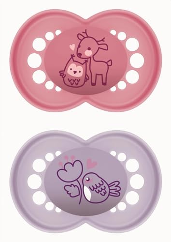 MAM Original Pure S341 napp med silikonnapp som är ultramjuk, för spädbarn från 16 månader, rosa, 2 stycken