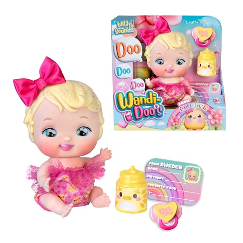 WANDI-DOO'S from Sweden, Kaukasisk babydocka från skandinaviska länder, tala med det universella språket för spädbarn, kycklingblöja med 2 tillbehör, flaska och napp, kändis (WAD03000)