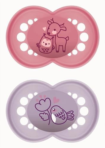 MAM Original Pure Night S326 napp med silikonnapp ultramjuk, för spädbarn från 16 månader, lyser i mörkret, rosa, 2 stycken