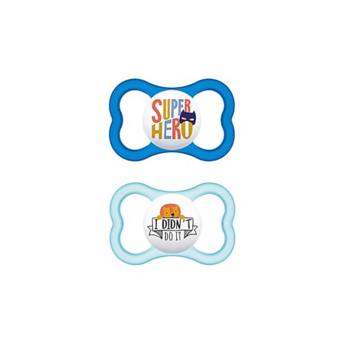 MAM Air S231 Napp - Sköld med extra stora hål för känslig hud, med Skinsofttm ultramjuk silikonnippel, för spädbarn 6+ månader, blå, med självsteriliserande låda, 2 enheter