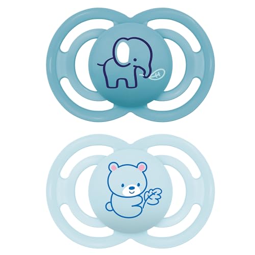 MAM Perfect S200 napp med silikonnapp och ultramjuk, för spädbarn från 16 månader, med självsteriliserande låda, blå, 2 stycken (1 stycken)