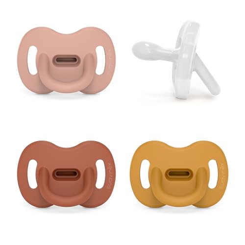 Suavinex, Set med 4 silikonnappar för nyfödda spädbarn 0/6 månader, napp med SX Pro symmetrisk napp, vändbar, supermjuk och mjuk, idealisk för sömn, rosa, grön, orange, senap