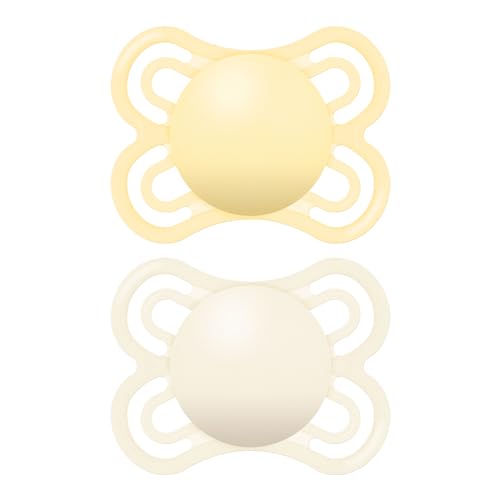 MAM Perfect S202 Dummy set med extra fin och flexibel napp av SkinSoftTM silikon, ultramjuk för spädbarn från 16 månader, neutral (2 stycken) med bilsteriliseringslåda