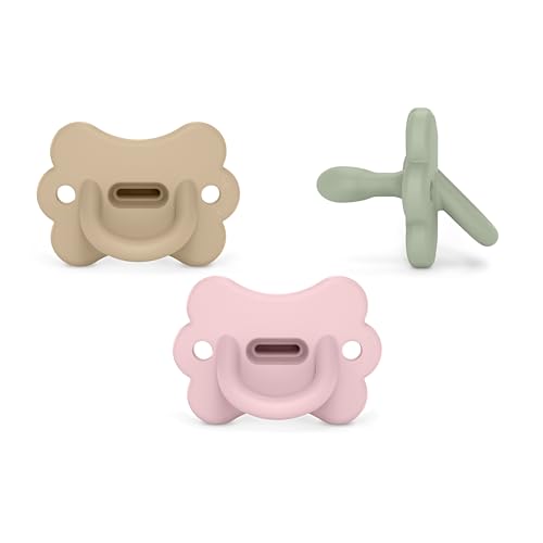 Suavinex, Set med 3 nappar i silikon, spädbarn 0–6 månader, nyfödda, Sx Pro fysiologiska napp, mjuk, flexibel, idealisk sömn, respekt för munutveckling, fjäril, rosa, grön, beige