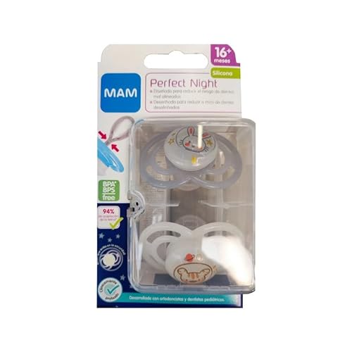 MAM Perfect Night S211 napp med ultramjuk silikondammsugare, för spädbarn från 16 månader, lyser i mörkret, med självsteriliserande låda, neutral, 2 stycken (1 st.)
