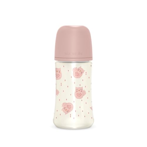 Suavinex, babyflaska 270 ml med fysiologisk napp SX Pro av silikon, med anti-kolikventil, medelstort matflöde (M), för spädbarn + 3 månader, Bonhomia, rosa