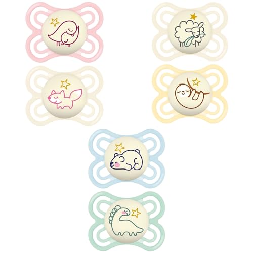MAM - Napp Perfect Night 2–6 månader (2 stycken) slumpmässiga färger - självlysande silikonnapp för spädbarn - idealisk babynapp för god munutveckling