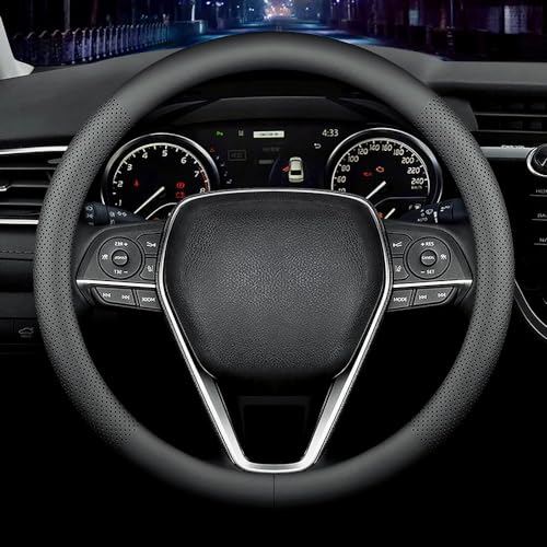Carodi senaste nappa läder bilrattskydd, snygg halkfri läderinredning 38 cm universell (svart)