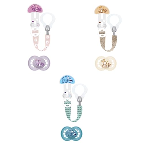 MAM, napp och nappklämma 18+ månader slumpmässig färg - anatomisk och symmetrisk napp i silikon - tvättbart nappklämma med justerbar längd, kompatibel med alla typer av nappar