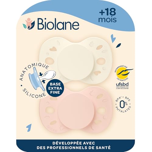 BIOLANE Anatomisk napp - Extra fina nappar - 18+ månader - Rosa och beige- platt, vändbar napp - Optimal komfort - Respekt för munutveckling - Säkra och hållbara material