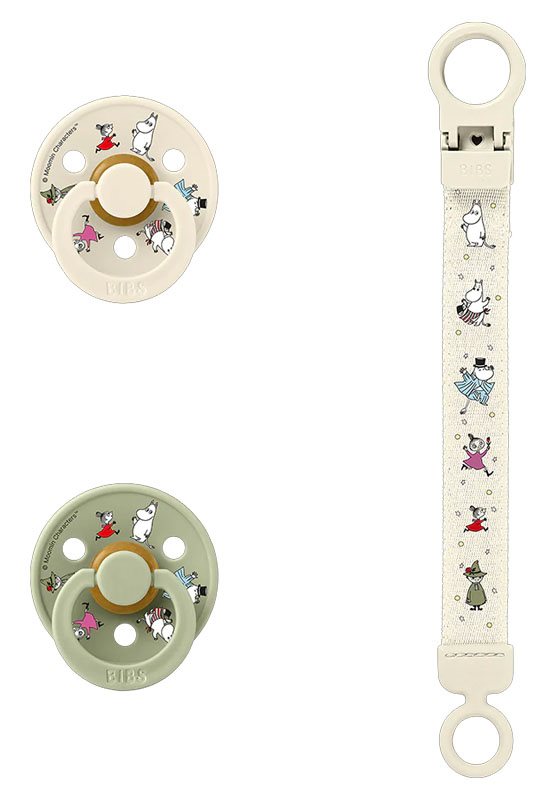 BIBS x Moomins napplåda med rem. Napphållare och steriliseringsfodral. 100% BPA-fritt livsmedelsgodkänt material - Ivory