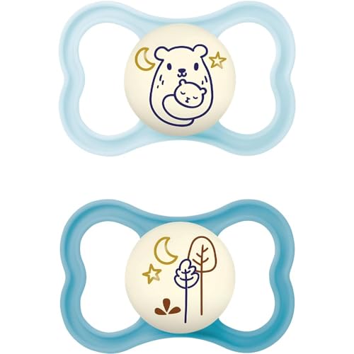MAM Original Nightht, napp 16+ månader (set med 2)) MAM 16 36 månader silikon och ortodontisk, lyser i mörkret, set om 2 babytillbehör med sterilisator napphållare, ljusblå/blå