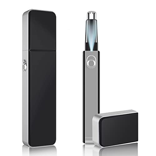 ACWOO näshårstrimmer för män, professionell smärtfri öron- och nästrimmertrimmer, batteridriven ansiktshårtrimmer med ljus, IPX7 vattentät, dubbelkantiga blad, smärtfri hårborttagning (svart)