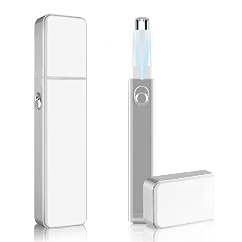 ACWOO näshårstrimmer för män, professionell smärtfri öron- och nästrimmertrimmer, batteridriven ansiktshårtrimmer med ljus, IPX7 vattentät, dubbelkantiga blad, smärtfri hårborttagning (Vit)