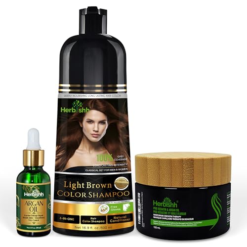 Herbishh After Color Shampoo Combo Contains Hair Color Shampoo Hair Dye 500ml Argan Oil 30ml Pro Keratin And Argan Hair Mask 100gm For Hair Straightening, Shine And Protection (Light Brown)