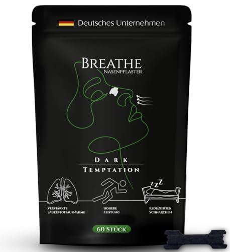Breathe Näsplåster – 60 stycken, svart | högre prestanda för sport, racingförare, inlärning | vilsam sömn och mindre snarkning | bättre andning vid rinnande och allergier