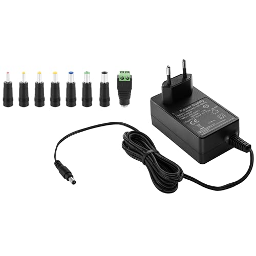 Poppstar AC DC universal laddare, nätdel 12V 3A (3000mA, 5,5/2,5mm) nätadapter med 8 ihåliga kontakter, 150 cm